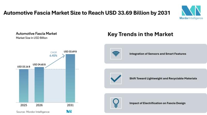 According to Mordor Intelligence, the automotive fascia market size [https://www.mordorintelligence.com/industry-reports/automotive-fascia-market?utm_source=abnewswire] was valued at USD 23.16 billion in 2025 and is expected to grow from USD 24.65 billion in 2026 to reach USD 33.69 billion by 2031, registering a CAGR of 6.4…