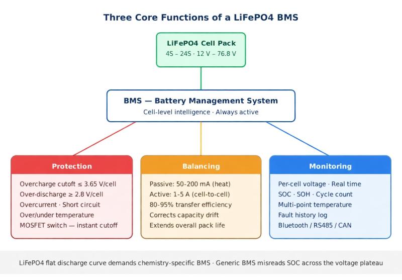 A LiFePO4 battery pack without a BMS is an unguarded liability.One overcharge event can permanently destroy cells. The wrong BMScauses months of phantom cutoffs and wasted capacity. This guidecovers everything you need to make the right decision.