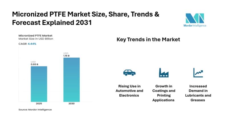Micronized PTFE Market Size to Grow from USD 0.93 Billion in 2025 to USD 1.16 Billion by 2030 at 4.44% CAGR | Mordor Intelligence Reports