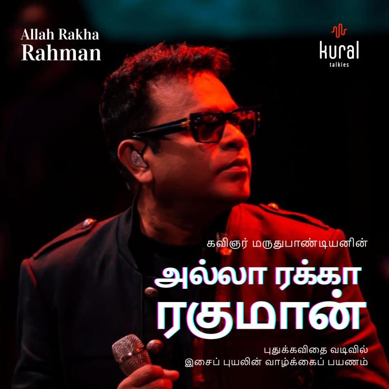 On January 6, 2026, we are proudly launching "Allah Rakha Rahman," an innovative podcast series that chronicles the iconic composer's life journey through the unique medium of contemporary Tamil free verse poetry. Written by the acclaimed poet Marudupandian, this series offers audiences a fresh and deeply artistic perspective on Rahman's extraordinary musical and spiritual odyssey.