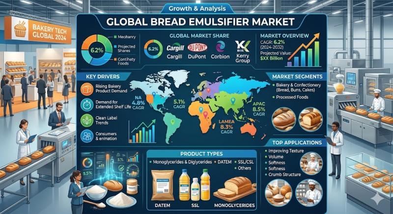 The latest study released on the Global Bread Emulsifier Market by HTF MI Research evaluates market size, trend, and forecast to 2033. The Bread Emulsifier study covers significant research data and proofs to be a handy resource document for managers, analysts, industry experts and other key people to have ready-to-access and self-analysed study to help understand market trends, growth drivers, opportunities and upcoming challenges and about the competitors.