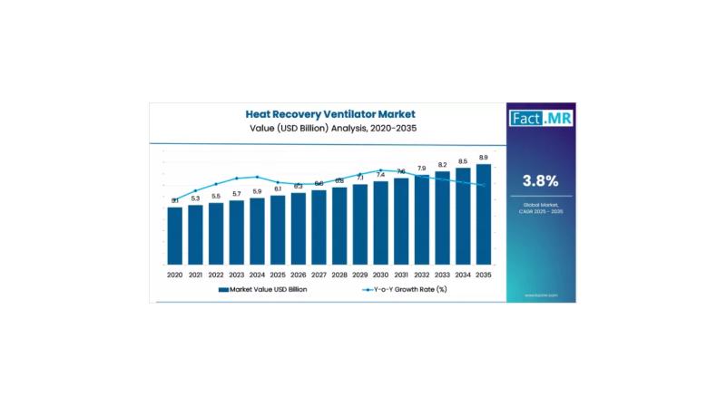 The global heat recovery ventilator market is projected to grow from USD 6.1 billion in 2025 to USD 8.9 billion by 2035, expanding at a compound annual growth rate (CAGR) of 3.8% during the forecast period, according to a new analysis by Fact.MR.