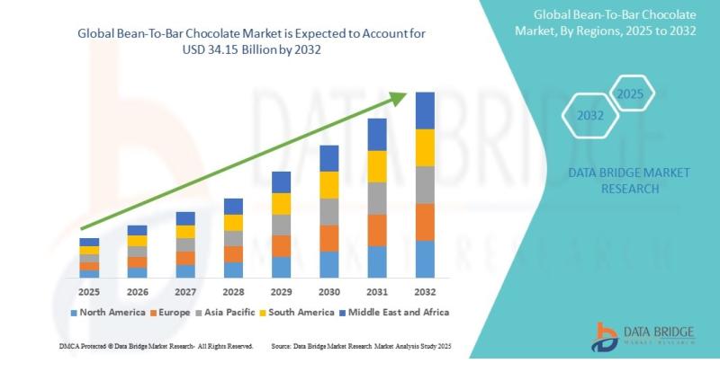 As per Data Bridge Market Research analysis, the bean-to-bar chocolate market was estimated at USD 16.23 billion in 2025. The market is expected to grow from USD 18.05 billion in 2026 to USD 34.15 billion in 2032, at a CAGR of 11.20% during the forecast period with driven by the rising demand for premium, organic, and ethically sourced chocolate products globally.