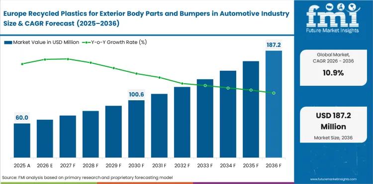 According to the latest analysis by Future Market Insights, the Europe recycled plastics for exterior body parts and bumpers market is entering a strong growth phase as automakers integrate circular materials into visible vehicle components. The market is valued at USD 60.0 million in 2026 and is projected to reach USD 170.0 million by 2036, expanding at a CAGR of 10.9%. The industry is expected to generate an incremental opportunity…