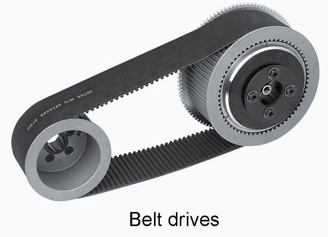 A belt is a looped strip of flexible material used to mechanically link two or more rotating shafts. A belt drive offers smooth transmission of power between shafts at a considerable distance. Belt drives are used as the source of motion to transfer to efficiently transmit power or to track relative movement. V-belt types are utilized in top speed high power transmitting applications. It gives better speed ratios and best among other belt drives.
