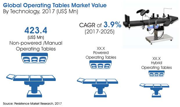 Albany, NY, 26th June : Recent research and the current scenario as well as future market potential of "Global Market Study on Operating Tables: Non-powered/Manual Operating Tables Anticipated to Remain Dominant Technology Through 2025" globally.A comprehensive research methodology for accurate market forecasting