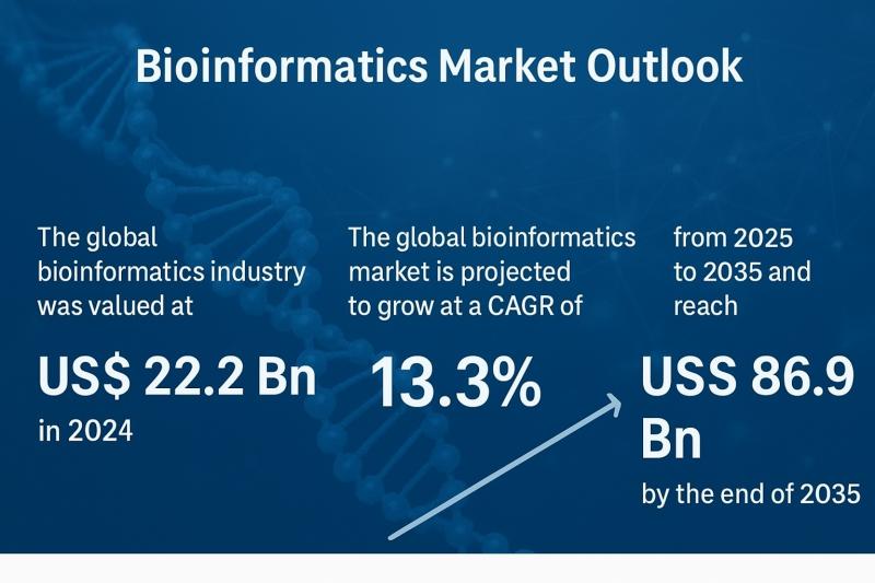 The global bioinformatics market continues to gain substantial momentum as the fusion of biological science and data analytics redefines healthcare, biotechnology, and pharmaceutical research. According to recent industry data, the market was valued at US$ 22.2 billion in 2024 and is anticipated to grow at an impressive CAGR of 13.3% from 2025 to 2035, reaching US$ 86.9 billion by 2035. The acceleration in adoption of next-generation sequencing (NGS), increasing use…
