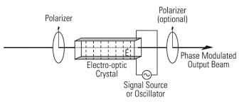 Electro-optic modulator (EOM) allows the user to control amplitude, phase, and polarization state of an optical beam under electric force. It primarily consists of one or two pockels cells, and additional optical elements, for instance, polarizers. The simplest kind of EOM consists of a crystal, whose refractive index is a function of the strength of the local electric field. Light is made to travel through the crystal slowly but the light leaving the crystal is directly proportional to the length of the time traveled through it. In a short way, the light can be modulated by the refractive index of the crystal by taking the time traveled into account. By this way, the modulation of light can be changed whether its phase, frequency or amplitude.