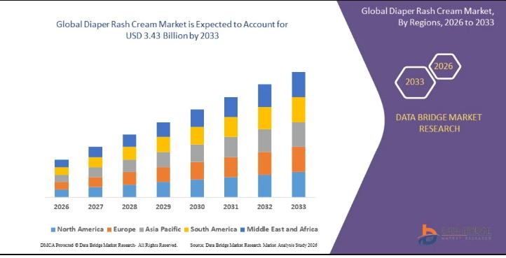 As per Data Bridge Market Research analysis, the Diaper Rash Cream Market was estimated at USD 2.02 billion in 2025. The market is expected to grow from USD 2.16 billion in 2026 to USD 3.43 billion in 2033, at a CAGR of 6.8% during the forecast period with driven by the rising demand for infant skincare products, increasing awareness of baby hygiene, expanding birth rates in emerging economies, and continuous…