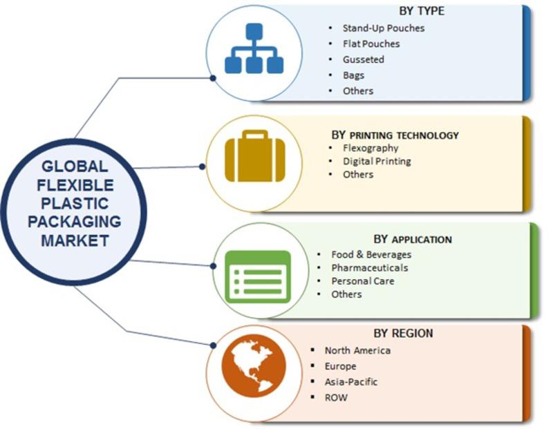 Global Flexible Plastic Packaging Market, By Type (Stand-Up Pouches, Flat Pouches, Gusseted, Bags and Others), By Printing Technology (Flexography, Digital Printing and Others), By Application (Food & Beverages, Pharmaceuticals, Personal Care and Others) and Region - Forecast 2017-2023.The major player operating in the market of global flexible plastic packaging are Amcor Limited(Victoria), Constantia Flexibles Group GmbH (Austria), Mondi Group (Johannesburg), Sealed Air Corporation (North Carolina), Sonoco Products Company (U.S.), Coveris Holdings S.A. (U.S.), Huhtamaki Group (Finland), Bemis Company Inc. (U.S.) and Ampac Holdings LLC (U.S.).
