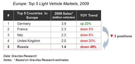 Gravitas Research Reveals Light Vehicle Sales in Russia in 2009. Russia is Back to the 5th Place in Europe.