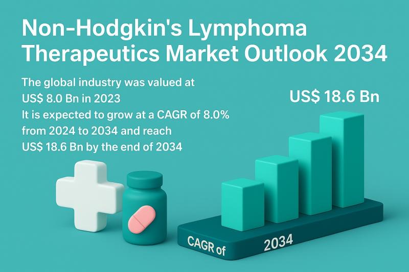 The global Non-Hodgkin's Lymphoma (NHL) Therapeutics Market is witnessing accelerated expansion, supported by the growing prevalence of lymphatic cancers and increasing adoption of advanced treatment modalities. According to the latest industry assessment, the market-valued at US$ 8.0 billion in 2023-is projected to grow steadily at a CAGR of 8.0% from 2024 to 2034, reaching US$ 18.6 billion by 2034.