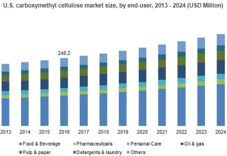 Considering the diverse usability of CMC as an emulsifying and thickening agent, the material is being increasingly used in processed meat, bakery products, white wine, condiments, frozen desserts, diet foods, dairy products, soups & sauces, and salad dressings, etc. Moreover, the rising demand for food products prepared with natural ingredients has emerged as one of the pivotal factors to impel the carboxymethyl cellulose (CMC) market.