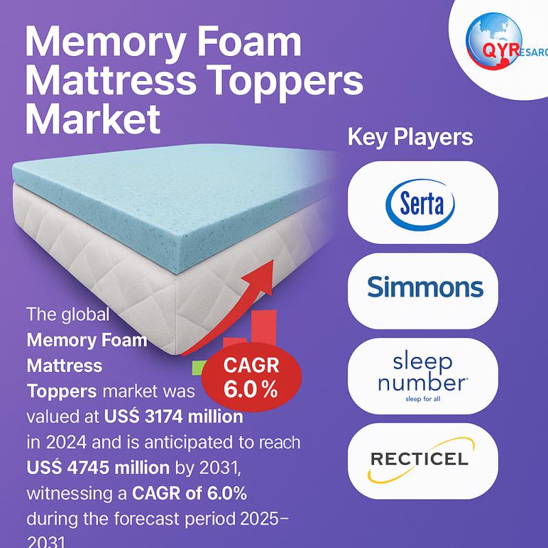 A recently released study titled Memory Foam Mattress Toppers Market by QY Research examines the market's dynamics along with emerging and future trends shaping industry growth. The report outlines the major factors driving and limiting market expansion, while also providing an in-depth review of regulatory frameworks, market entry approaches, industry best practices, pricing models, technology developments, and patterns in consumption, sales, and demand. Year-over-year growth projections are included to…