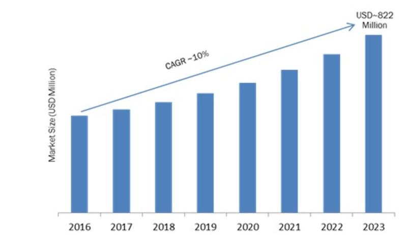 The global ambient light sensor market is expected to grow at approx. USD 822 Million by 2023, at 10% of CAGR between 2017 and 2023.