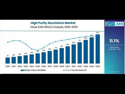 [London, UK - November 2025] - The global high-purity aluminium (HPA) market is projected to rise from USD 5.3 billion in 2025 to USD 15.2 billion by 2035, expanding at a compound annual growth rate (CAGR) of 11.1%. This growth is primarily driven by the increasing use of HPA in electric vehicle (EV) batteries, semiconductors, and LED lighting, which require superior conductivity, corrosion resistance, and high thermal stability.