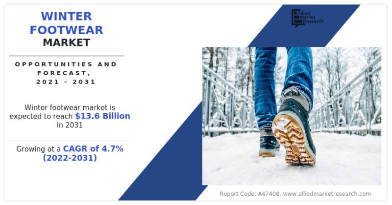 According to a new report published by Allied Market Research, titled, "Winter Footwear Market," The winter footwear market was valued at $8.6 billion in 2021, and is estimated to reach $13.6 billion by 2031, growing at a CAGR of 4.7% from 2022 to 2031.