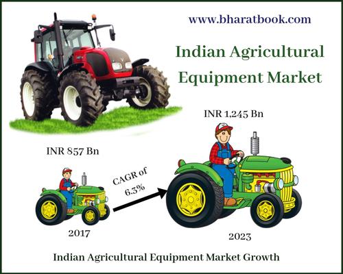 Bharat Book Bureau Provides the Trending Market Research Report on “Indian Agricultural Equipment Market” under Agriculture category. The Indian Agricultural Equipment Market is projected to exhibit highest growth rate over report offers a collection of superior market research, market analysis, competitive intelligence and industry reports.The Indian Agricultural Equipments Market was worth INR 857 Billion in 2017. The market is further projected to reach INR 1,245 Billion by 2023, at a CAGR of 6.3% during 2018-2023. Over the last few years, there has been a considerable progress in agriculture mechanization. A significant proportion of farmers in the country have already started moving from using animate sources to mechanical equipments to power their farming activities. Mechanical equipments for various farm operations like tillage, sowing, irrigation, plant protection and threshing, etc., are generally being used by the farming community. As a result of increasing farm mechanization trends, the agricultural equipment market has witnessed strong growth in the past few years. This market is currently being driven by a number of factors such as easy availability of credit, government incentives, increasing agricultural productivity, emergence of contract farming, increasing rural incomes, etc.
