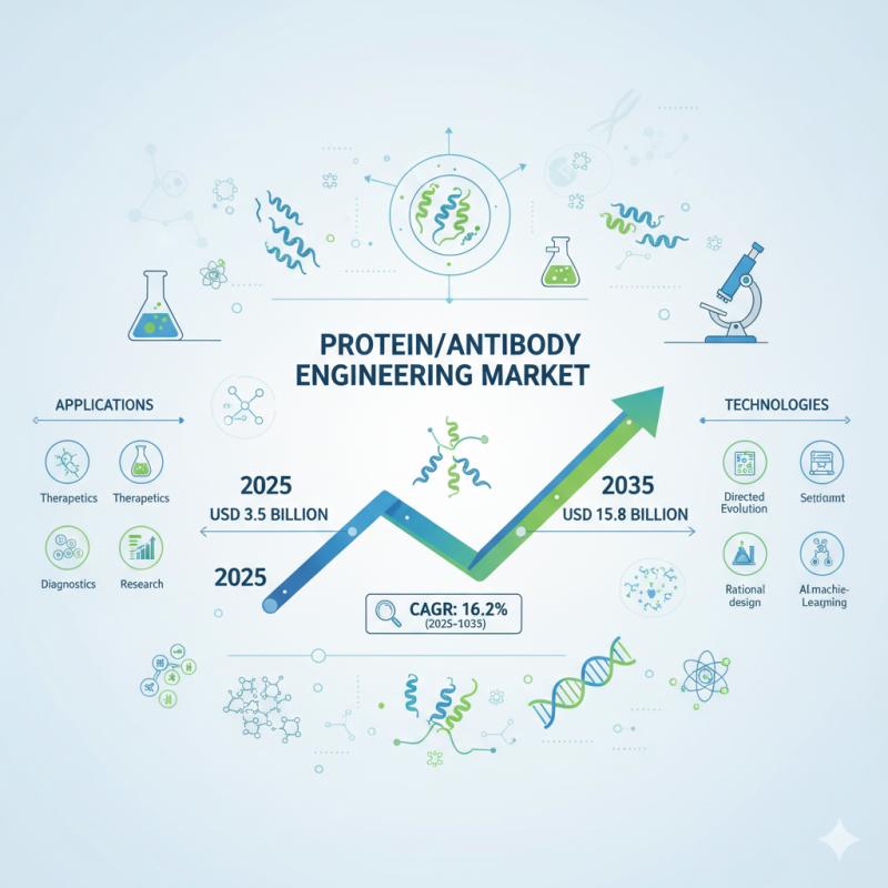 The global Protein/Antibody Engineering Market, valued at USD 3.5 billion in 2025, is projected to surge to USD 15.8 billion by 2035, expanding at an impressive CAGR of 16.2%. This strong growth trajectory reflects accelerated adoption of engineered biologics designed to treat complex and chronic diseases across oncology, infectious diseases, and autoimmune disorders.