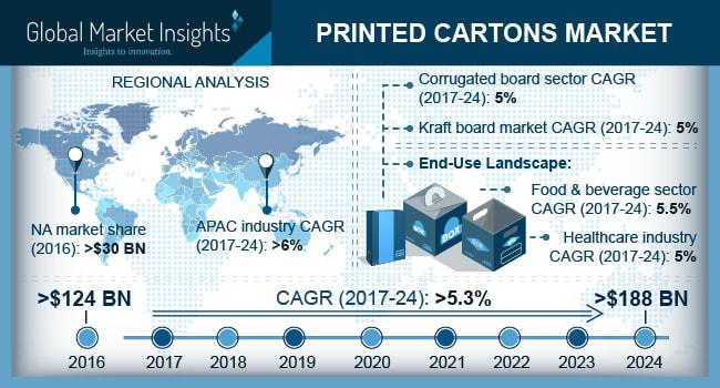 According to a new research report by Global Market Insights, Inc. Printed Cartons Market size is poised to exceed USD 188 billion by 2024Key industry share contributors of printed cartons are Amcor, WestRock, Lithoflex, Tetra Pak International, Refresco, Winston Packaging, Glossop Cartons, Evergreen Packaging and All Packaging Company.