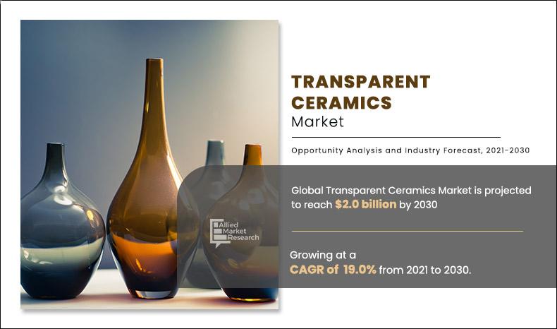 The global transparent ceramics market was estimated at $0.4 billion in 2020 and is expected to hit $2.0 billion by 2030, registering a CAGR of 19.0% from 2021 to 2030. The report provides an in-depth analysis of the top investment pockets, top winning strategies, drivers & opportunities, market size & estimations, competitive scenario, and varying market trends.