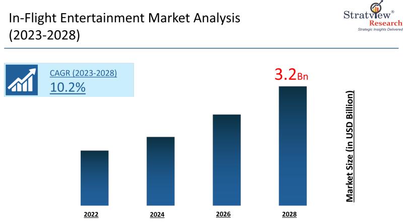 The in-flight entertainment market, which covers systems and solutions that provide audiovisual content and engagement services to airline passengers during flights, is expected to grow significantly in the coming years. According to Stratview Research, the market is projected to reach approximately USD 3.2 billion by 2028, exhibiting a CAGR of around 10.2% over the 2023-2028 forecast period. This rapid growth is primarily driven by increasing air passenger traffic and the