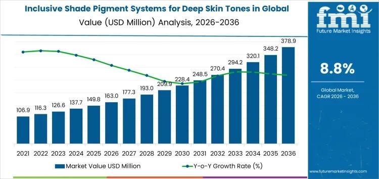 The Inclusive Shade Pigment Systems for Deep Skin Tones in Global Brands Market is on a strong growth trajectory, valued at USD 163 million in 2026 and projected to reach USD 378.9 million by 2036, reflecting a CAGR of 8.8%. Growth is increasingly driven by formulation performance requirements rather than shade range expansion alone. Brand preference now emphasizes pigment dispersion stability, undertone accuracy, and batch-to-batch consistency across darker shades. Suppliers…