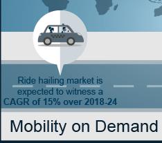 Increasing urbanization and rising population have resulted in an exponential growth in the vehicle fleet size in the last few years, due to which many cities are witnessing a swelling pressure to tackle air pollution and traffic congestion problems. Growth in the working population has boosted the need for time-reliable solutions. Therefore, rising pollution from vehicles coupled with increasing traffic issues has led to the rising awareness of the mobility on demand market concept. The integration of real-time data, transit networks & operations, and co-operative smart transport systems provide enhanced transportation options to all users in a safe and efficient manner.
