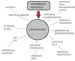 Sarcopenia diseases Causes: Satellite cells are small mononuclear cells that abut the muscle fiber. Satellite cells are normally activated upon injury or exercise. These cells then differentiate and fuse into the muscle fiber, helping to maintain its function. One theory is that sarcopenia is in part caused by a failure in satellite cell activation. Extreme muscle loss is often a result of both diminishing anabolic signals, such as growth hormone and testosterone, and promotion of catabolic signals, such as pro-inflammatory cytokines. Oxidized proteins increase in skeletal muscle with age and leads to a buildup of lipofuscin and cross-linked proteins that are normally removed via the proteolysis system. These proteins compile in the skeletal muscle tissue, but are dysfunctional. This leads to an accumulation of non-contractile material in the skeletal muscle. This helps explain why muscle strength decreases severely, as well as muscle mass, in sarcopenia. One group has suggested that the evolutionary basis for the failure of the body to maintain muscle mass and function with age is that the genes governing these traits were selected in a Late Paleolithic environment in which there was a very high level of obligatory muscular effort, and that these genetic parameters are therefore ill-matched to a modern lifestyle characterized by high levels of lifelong sedentary behavior.Epidemiological research into the developmental origins of health and disease has shown that early environmental influences on growth and development may have long-term consequences for human health. Low birth weight, a marker of a poor early environment, is associated with reduced muscle mass and strength in adult life. One study has shown that lower birth weight is associated with a significant decrease in muscle fibre score, suggesting that developmental influences on muscle morphology may explain the widely reported associations between lower birth weight and sarcopenia.