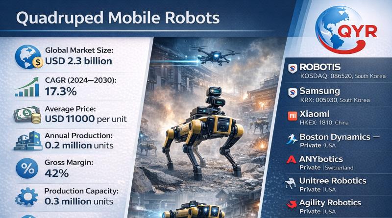 QY Research has released a comprehensive new market report on Quadruped Mobile Robots, are four-legged robotic systems designed to move and operate in complex, unstructured environments by mimicking the locomotion of animals. They use a combination of advanced sensors, actuators, AI algorithms, and real-time control systems to maintain balance, navigate uneven terrain, climb obstacles, and adapt to dynamic conditions. Because of their high stability and mobility, quadruped robots are widely…