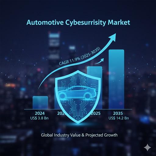The global automotive cybersecurity market is witnessing robust expansion, driven by the growing adoption of connected vehicles, advanced driver-assistance systems (ADAS), and increasing digitalization across automotive electronics. Valued at US$ 3.8 billion in 2024, the market is projected to reach US$ 14.2 billion by 2035, growing at a CAGR of 11.9% during the forecast period 2025-2035.