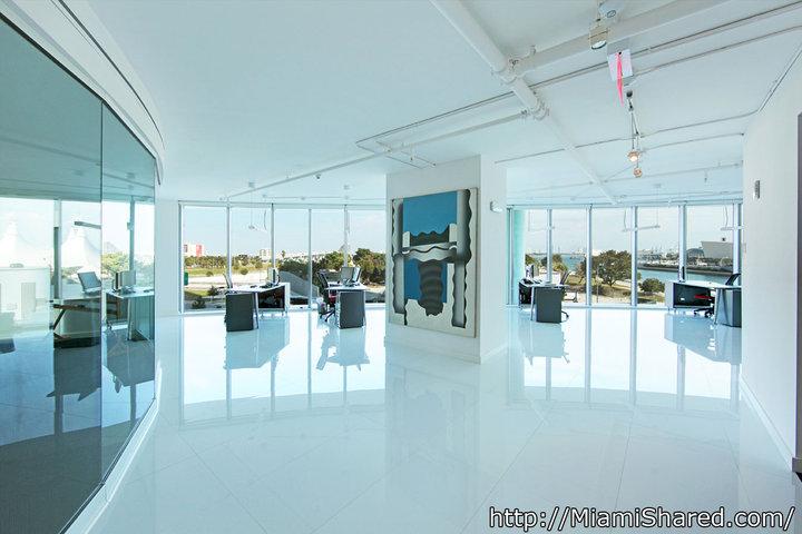 MiamiShared.com is an exclusive, one of a kind shared work environment catering to the individual entrepreneur, start up company, and small business owners of Miami. Located at 900 Biscayne Bay, across from the American Airlines Arena and surrounded by a wide array of restaurants, shops and parks, MiamiShared brings a new type of culture and vibe with its modern look of high ceilings, glass enclosed private offices and curved floor plan to the otherwise boring work setting.With a growing number of clients, a regular day at the office is sure to be eventful. Weekly lunch gatherings in the break room are full of good company, great food and non-stop conversation. Testimonials from satisfied tenants such as Padma Pandya, President of GreenDoggieBags.com describe the lively offices as an “easy going, refreshing environment, with a sleek professional touch”. Others such as Ronaldo Ricardo Co-founder of IsoPlanit.com, a start-up event marketing company, have referred to this energetic co-working environment as a “great compromise between working in Starbucks and having a place where you can actually get your mail and have a decent conference with potential clients/investors."