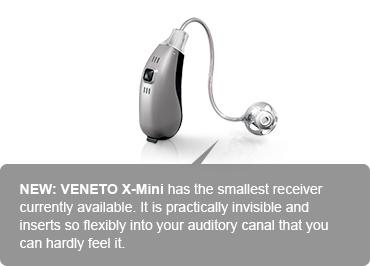 The VENETO X-Mini receiver-in-the-canal system is available for mild to severe hearing loss in the CIC, Mini-Canal, Canal and Concha designs.