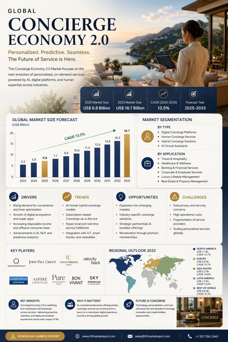 The Global Concierge Economy 2.0 Market 2033 focuses on the next evolution of personalized, on-demand service ecosystems, delivering a comprehensive analysis of key growth components with a deep-dive methodology. The report enables stakeholders to evaluate long-term demand patterns while forecasting future service innovations and execution models.