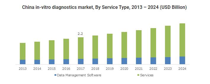 Reagents & kits will grow at 6.9% CAGR over the forecast period and is projected to grow in future owing to escalating demand for reagents & kits used in diagnosis of viral, fungal and bacterial diseases. Rising number of viral and fungal infections specifically in emerging countries such as India with poor hygiene conditions will drive demand for in-vitro diagnostics services thereby should escalate the in-vitro diagnostics market growth.