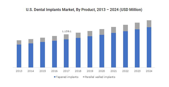Parallel-walled dental implants segment will foresee rapid growth at 5.0% CAGR. High segmental growth is credited to benefits rendered by parallel-walled implants including application of these implants in high density bones as well as other quality bones. Furthermore, technological advancements and growing prevalence of oral disorders will drive the demand for parallel-walled dental implants over the forecast period.
