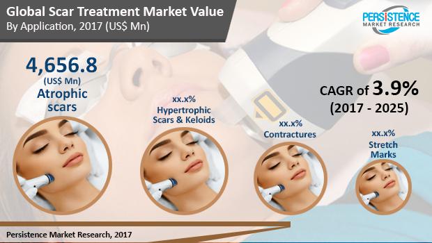 ResearchMoz include new market research report "Global Market Study on Scar Treatment: Application in Treatment of Atrophic Scars to Witness Robust Growth During 2017 - 2025" to its huge collection of research reports.In this report, Persistence Market Research has provided key insights on the global scar treatment market over the forecast period (2017-2025). The objective of this report is to offer in-depth analysis and estimations on the market, including driving factors, challenges, key market opportunities, latest trends, major segments, the performance of the regional markets and prominent players operating in the global market for scar treatment. The report also focuses on quality insights and the data offered has been included through interviews with market experts, product managers, and clinicians.