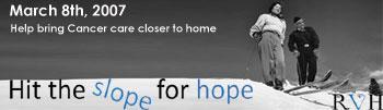Lucid Communications and Horseshoe Resort host the first ever ‘Hit the slope for hope’ fundraiser to benefit the Royal Victoria Hospital’s Simcoe-Muskoka Regional Cancer Care CentreBarrie, ON – February 19, 2007 – Break out your skis and be among the first to ‘Hit the slope for hope’ at Horseshoe Resort to help raise funds for the Royal Victoria Hospital’s (RVH) Simcoe-Muskoka Regional Cancer Care Centre (SMRCC). This amazing evening on Thursday, March 8th, 2007 incorporates night skiing, contests and an après ski soiree to bring the community together to help bring cancer care closer to home.