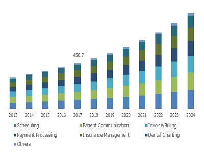 Dental Practice Management Software Market size was valued over USD 1.1 billion in 2017 and is expected to witness 11.6% CAGR from 2018 to 2024 according to a new research report by Global Market Insights.Increasing geriatric population worldwide will act as high impact rendering driver for dental practice management software (DPMS) market growth. As per World Population Prospects data, the aging patient base aged 60 years and above is predicted to be more than double by 2050. Rising number of elderly patient pool suffering from dental disorders will result in industry expansion.