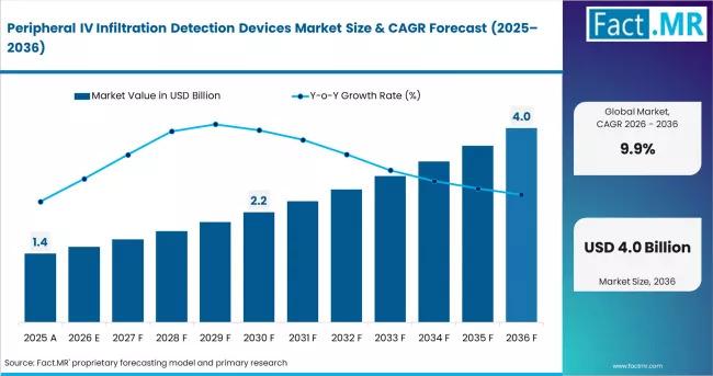 The global Peripheral IV Infiltration Detection Devices Market is standing at a critical inflection point in clinical safety. According to a new comprehensive industry analysis by Fact.MR, the market valued at US$ 1.3 billion in 2025 is projected to reach a staggering US$ 3.7 billion by 2036, expanding at a robust CAGR of 9.9%.