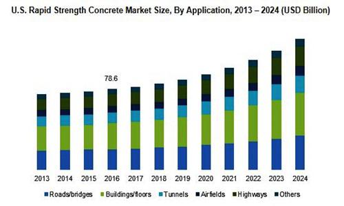 Roads and bridges acquires more than 20% of the total rapid strength concrete market. Advanced development in the ongoing construction of roads and bridges in North America is going to propel the industryin the near future. Heavy construction activities for the repair and upgradation of bridges in the U.S. will considerably increase the rapid strength concrete marketby over 6% CAGR till 2024.