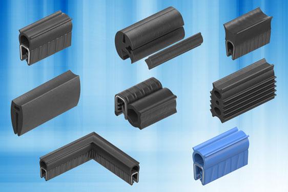 Profiles in EPDM, neoprene, PVC, black nitrate and natural rubber cover traditional expanded closed cell (self-adhesive) foam, through wiping blade and bubble or P type sections, with self-grip (clip-on), channel fixing and window type (with expansion insert), to more complex multi-functional and custom designs, perhaps with fillers or flocked weather strips and supported sections with internal or flange structural support.