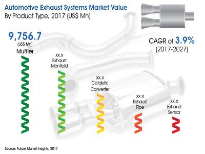 As per this research report, the global automotive exhaust systems market is expected to reach a market valuation of about US$ 36 Bn by the end of the year of assessment in 2027, from a value of just under US$ 25 Bn in 2017. The global market for automotive exhaust systems is expected to rise at a value CAGR of 3.9% throughout the period of assessment.