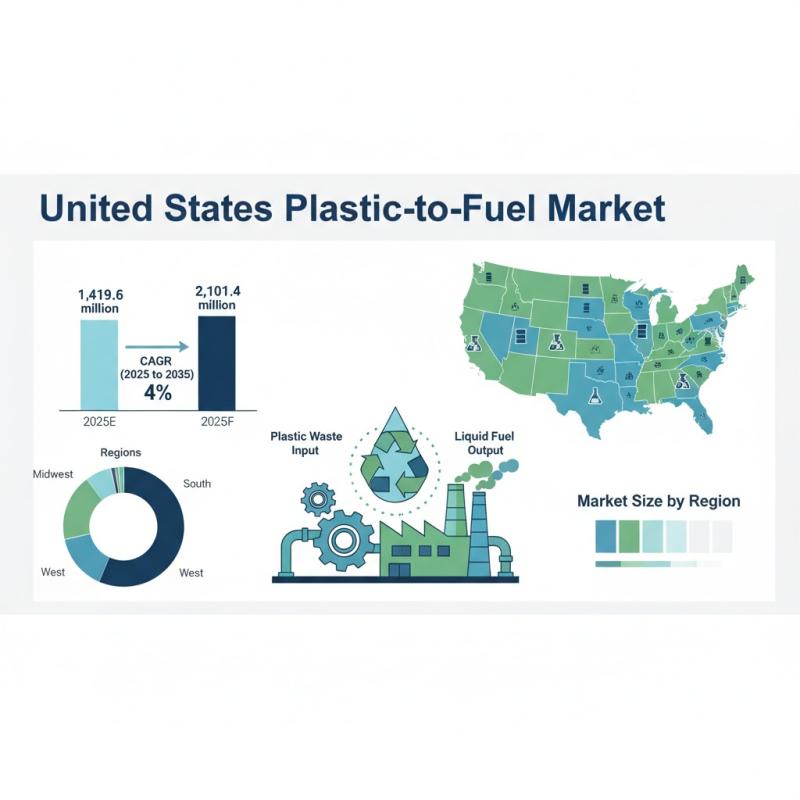The United States plastic-to-fuel market is poised for steady expansion through 2035, fueled by escalating plastic waste challenges, advanced conversion technologies, and aggressive landfill diversion policies. According to Future Market Insights (FMI), the market is valued at USD 1,419.6 million in 2025 and is projected to hit USD 2,101.4 million by 2035, growing at a compound annual growth rate (CAGR) of 4%.