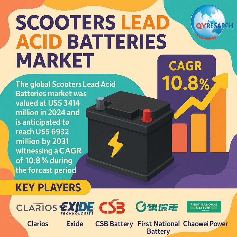 Los Angeles-United State: QY Research has recently published a research report titled, "Global Scooters Lead Acid Batteries Market Report, History and Forecast 2017-2028, Breakdown Data by Companies, Key Regions, Types and Application" assessing various factors impacting its trajectory. The global Scooters Lead Acid Batteries market was valued at US$ 3414 million in 2024 and is anticipated to reach US$ 6932 million by 2031, witnessing a CAGR of 10.8% during the…
