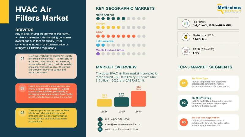 Meticulous Research, a leading global market research company, has published a new research report titled "HVAC Air Filters Market Size, Share, Trends, Growth Opportunities & Forecast by Filter Type, MERV Rating, End-Use Industry, and Region - Global Outlook 2025 to 2035."