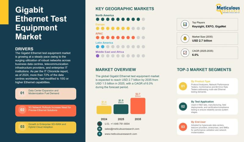 Gigabit Ethernet Test Equipment Market to Reach USD 2.7 Billion by 2035