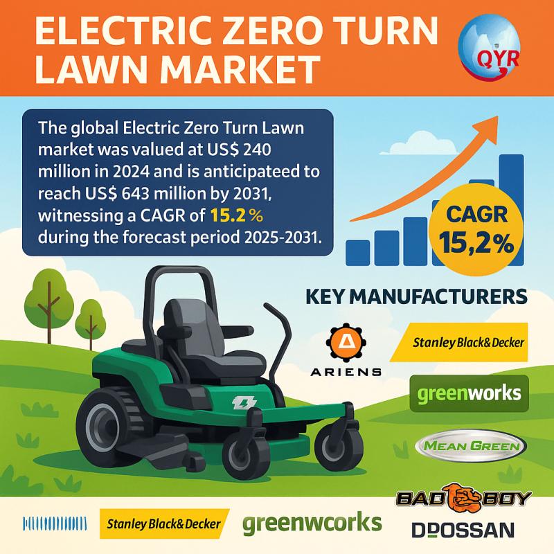 Los Angeles-United State: QY Research has recently published a research report titled, "Global Electric Zero Turn Lawn Market Report, History and Forecast 2017-2028, Breakdown Data by Companies, Key Regions, Types and Application" assessing various factors impacting its trajectory. The global Electric Zero Turn Lawn market was valued at US$ 240 million in 2024 and is anticipated to reach US$ 643 million by 2031, witnessing a CAGR of 15.2% during the…