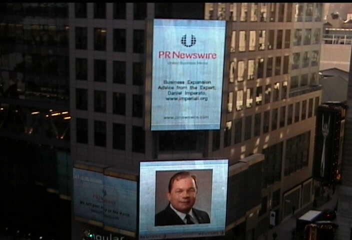 New York – April 10, 2007 – Today the Imperiali Organization announced that they have been featured, along with founder Daniel Imperato, on the Reuters Billboard on Times Square in a week long campaign to develop business in the New York area.Imperato has consulted for Fortune 500 corporations, with a mix of product lines, consisting of telecommunications equipment, products, and services, including v-sat terminals, handheld mobile satellite telephones, passport and identification cards services and secure documents for foreign governments around the world.