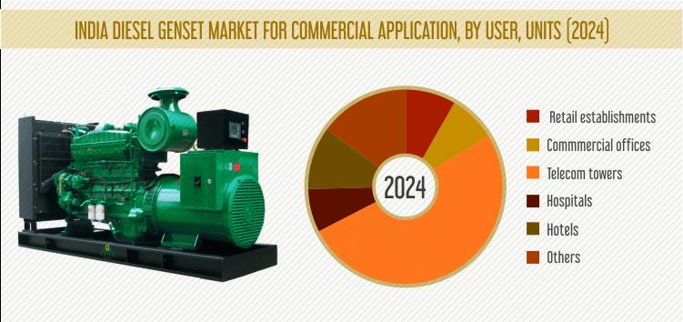 Telecom towers are projected to create the highest demand in the diesel genset market in India. In 2018, telecom towers registered a volume share of more than 51.0% in the Indian commercial diesel genset sector.
